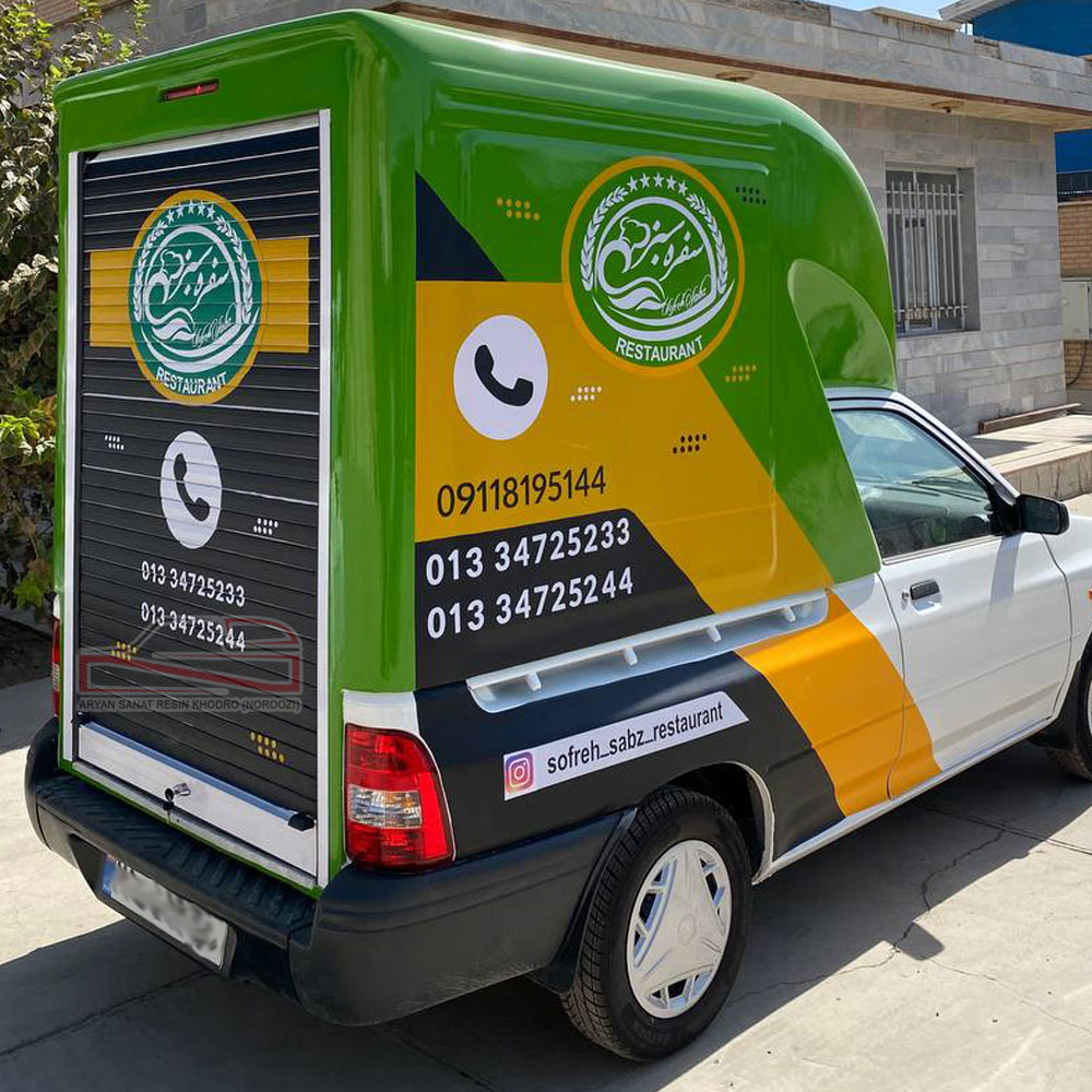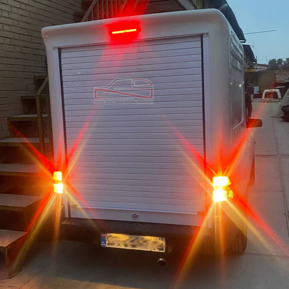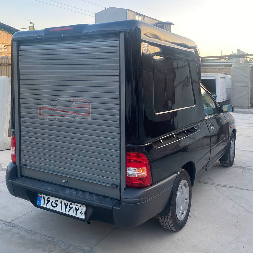 آرین صنعت رزین خودرو سازنده انواع اتاق عقب فایبرگلاس و کانوپی کابین فایبرگلاس پراید درب عقب کرکره ای بغل بسته